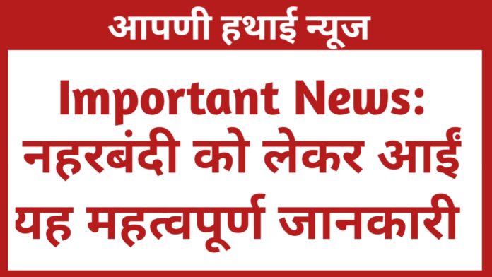 आपणी हथाई न्यूज,अधीक्षण अभियंता जन स्वास्थ्य अभियांत्रिकी विभाग वृत्त बीकानेर खेमचंद सिंगरिया ने बताया कि इंदिरा गांधी नहर परियोजना विभाग की सूचना के अनुसार नहरबंदी लगभग पांच दिवस बाद की जाएगी। यानी नहरबंदी 12 अप्रैल से लागू नहीं होगी। अतः इंदिरा गांधी नहर विभाग की सूचना के अनुसार ही भविष्य में जल वितरण की व्यवस्था में बदलाव किया जाएगा। वर्तमान में पेयजल वितरण व्यवस्था पूर्ववृत्त रहेगी।