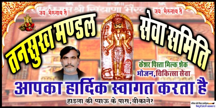 आपणी हथाई Bikaner न्यूज,सियाना भैरव यात्रा के अवसर पर तनसुख मंडल सेवा समिति का सेवा शिविर आयोजत किया जाएगा नथानियों की सराय रंगो की गली नं 2 की तनसुख मंडल सेवा समिति ने सियाना भैरव यात्रा के दौरान एक भव्य सेवा आयोजन की घोषणा की है, जो 28 अगस्त 2025 को ऋषि पंचमी के अवसर पर हाड़ला प्याऊ पर होगा। यह आयोजन पिछले 25 वर्षों से लगातार किया जा रहा है, जिसका उद्देश्य भक्तों को आध्यात्मिक और शारीरिक रूप से लाभान्वित करना है। सेवा समिति की मोहित रंगा ने बताया की सेवा शिविर में भोजन सेवा में मटर पनीर, चिप्स, मिक्स अचार, रोटी और जलेबी दी जाएगी, पेय सेवा में ठंडा बादाम पिस्ता केसर युक्त मिल्क शेक और ठंडा जल व चिकित्सा सेवा में मेडिकल टीम की उपस्थित रहेगी।समिति की ओर से सभी भक्तों से अनुरोध है कि वे इस सेवा में सपरिवार पधारें और भैरव बाबा का प्रसाद ग्रहण करें।