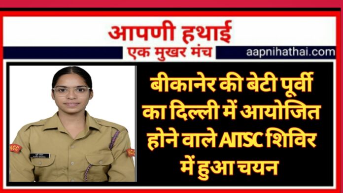 आपणी हथाई Bikaner न्यूज,राजकीय महारानी सुदर्शन कन्या महाविद्यालय की 3 राज गर्ल्स बटालियन की कैंडेट पूर्वी सेवग का दिल्ली में आयोजित होने वाले ऑल इंडिया थल सैनिक कैप (AITSC) शिविर हेल्थ एंड हाईजीन कार्यक्रम के लिए चयन हुआ है। राजस्थान के चार एनसीसी समूह जयपुर, जोधपुर, कोटा व उदयपुर के सैकड़ो कैडेट्स मे दिल्ली में आयोजित होने वाले ऑल इंडिया थल सैनिक कैप लिए 91 कैडेट्स का चयन किया गया जिसमें लड़कियो की संख्या 40 है। बीकानेर की पूर्वी सेवग का इस कैंप में चयन होने पर उनके पिता भूपेश सेवग व माता जी जमुना देवी के साथ साथ शंकर बोहरा, नारायण बिस्सा ने पूर्वी के चयन होने पर शुभकामनाएं दी।
