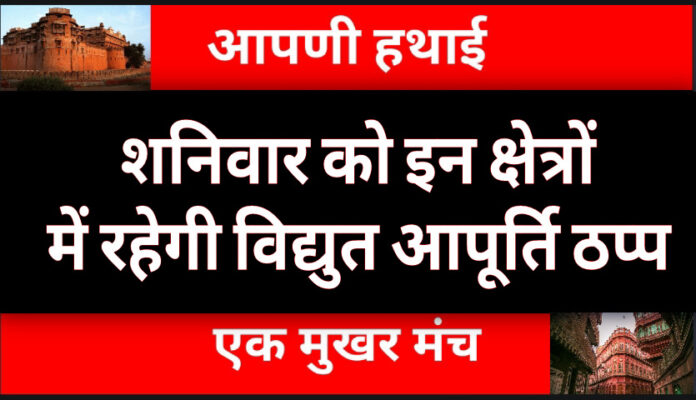 अलख सागर कुआ, माल गोदाम रोड, बोथरा कॉपलेक्स, मॉडर्न मार्केट, केईएम रोड, बी.सेठिया गली, गणपति प्लाजा, खंजाची मार्केट, केईम रोड, हनुमान मन्दिर, हेड पोस्ट ऑफिस, ओल्ड बस स्टेण्ड, चौतीना कुआं, चौतीना मौहल्ला, कुंज गेट, संतोषी माता मन्दिर, पब्लिक पार्क, स्तन बिहारी पार्क, कोट गेट, जुनागढ फोर्ट का क्षेत्र में बिजली गुल रहेगी।