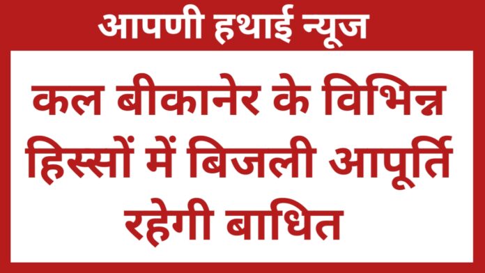Power cut: कल बीकानेर के विभिन्न क्षेत्रों में बिजली आपूर्ति रहेगी बाधित