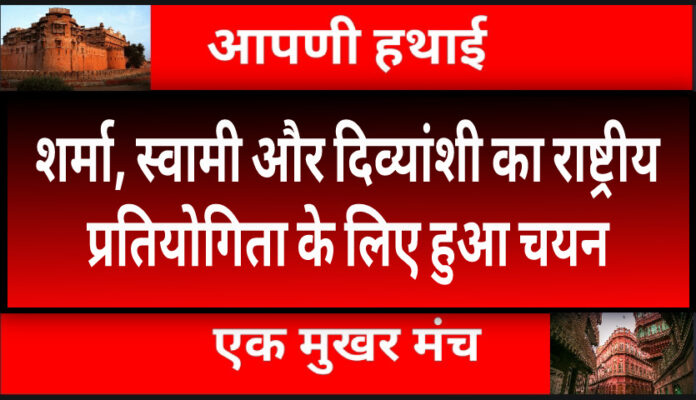 Sports आपणी हथाई न्यूज ,कोटा के रघुराई इंडोर कॉम्प्लेक्स नयापुरा में आयोजित 32वीं सब जूनियर राज्य स्तरीय ताइक्वांडो प्रतियोगिता 2025 में मेडल जीतने खिलाड़ी दिव्यांशी, खुश स्वामी एवं मोहित शर्मा का राष्ट्रीय स्तरीय ताइक्वांडो प्रतियोगिता के लिए चयनित खिलाड़ियों को जिला ताइक्वांडो अध्यक्ष डॉ राकेश हर्ष उपाध्यक्ष विक्रम सिंह राठौड़ ने बधाई दी आगामी और बताया कि 13 से 15 जनवरी 2025 को तालकटोरा इंदौर स्टेडियम नई दिल्ली में आयोजित 39 वीं सब जूनियर नेशनल ताइक्वांडो प्रतियोगिता 2025 में बीकानेर के तीनों खिलाड़ी राजस्थान का प्रतिनिधित्व करेंगे।