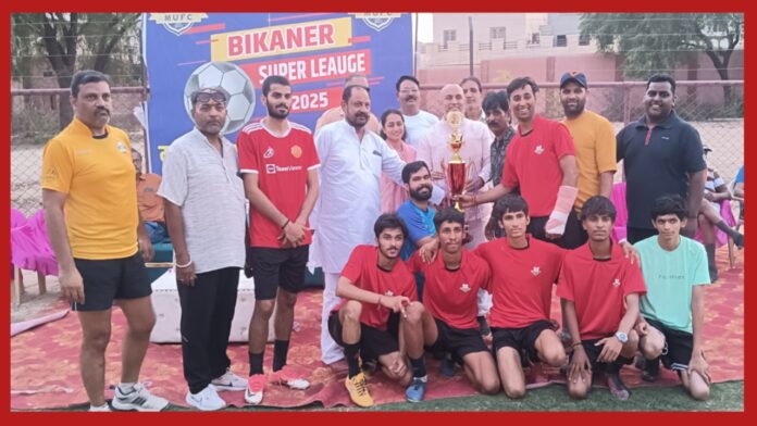 आपणी हथाई Sports न्यूज,मास्टर उदय फुटबाल क्लब के तत्वाधान में पुष्करणा स्टेडियम में 7 ए साइड फुटबाल प्रतियोगिता का फाइनल मैच मास्टर उदय क्लब व कृष्णा लॉजिस्टिक्स के बीच हुआ। दोनों टीमों ने शानदार खेल प्रदर्शन किया, फर्स्ट हाफ में 0-0 का स्कोर रहा उदय क्लब के गणेश रंगा, देवांश पुरोहित, श्याम कुमार हर्ष का खेल सराहनीय रहा। मिडिया प्रभारी उदय व्यास ने बताया की मैच के मुख्य अतिथि समाजसेवी कमल कल्ला, हिमालय डेंटल क्लिनिक संचालक डॉ पूजा कंवर (समाजसेवी) रूप किशोर व्यास रहे। फाइनल मुकाबले में कृष्णा लॉजिस्टिक टीम ने आत्मघाती गोल होने से उदय क्लब की टीम 1-0 से आगे हो गई वहीं सेकंड हाफ में उदय क्लब के लास्ट मूव पर श्याम हर्ष ने एक और गोल डाल कर अपनी टीम को जीत दिलाई व ट्रॉफी पर कब्जा किया श्रवण व्यास ने बताया की विजेता और उप विजेता की ट्रॉफी स्मृति शेष भगवान दास जी व्यास पुत्र स्मृति शेष पंडित ग्वाल दास जी व्यास जिया भवन परिवार की ओर से दी गई।